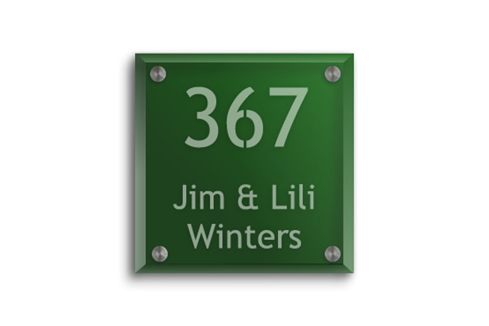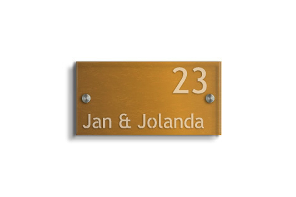 Voorbeelden standaard modellen naamborden van glas