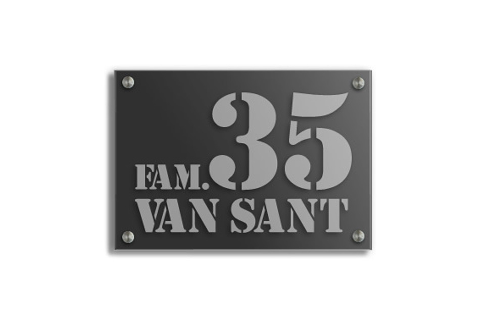Prijs: €95 (meerprijs achterplaat voor uw glazen naambord €30)