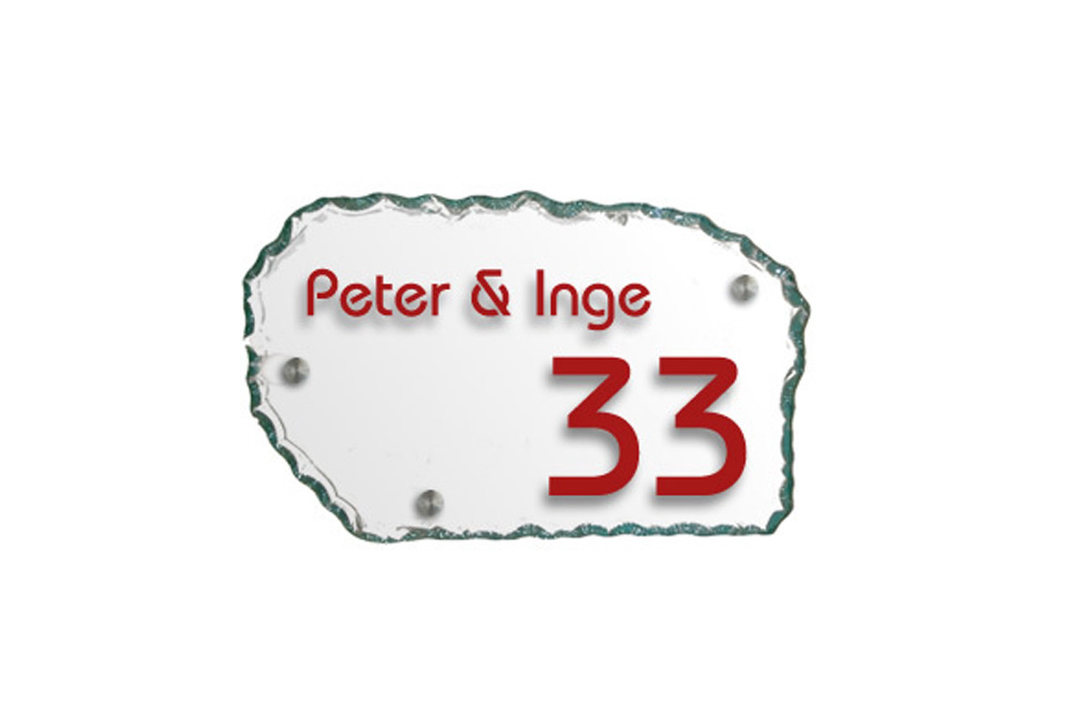 Prijs: €65 (meerprijs achterplaat voor uw glazen naambord €30)